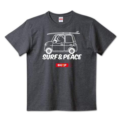 新色<ダークヘザーネイビー>ヒグマSURF&PEACEドライブ ホワイトプリント Tシャツ