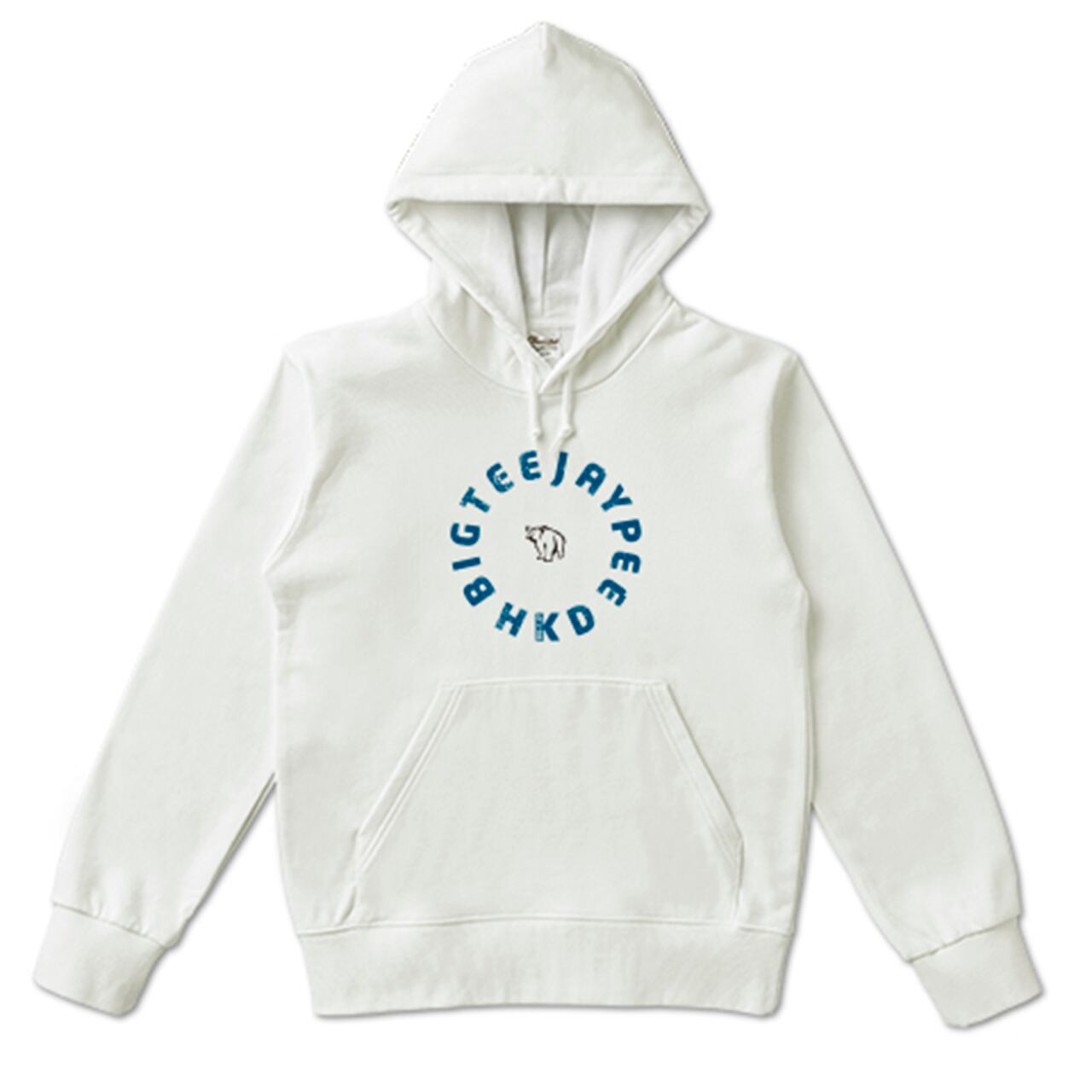 新作!(4XL身巾72cmまで)BIGTJPサークルロゴ Wフードプルパーカー:ホワイト(前プリント)