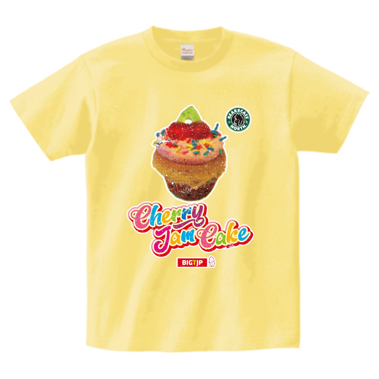 <新作!XXXLまで>チェリージャムケーキ Tシャツ-RETRO Tシャツ:イエロー