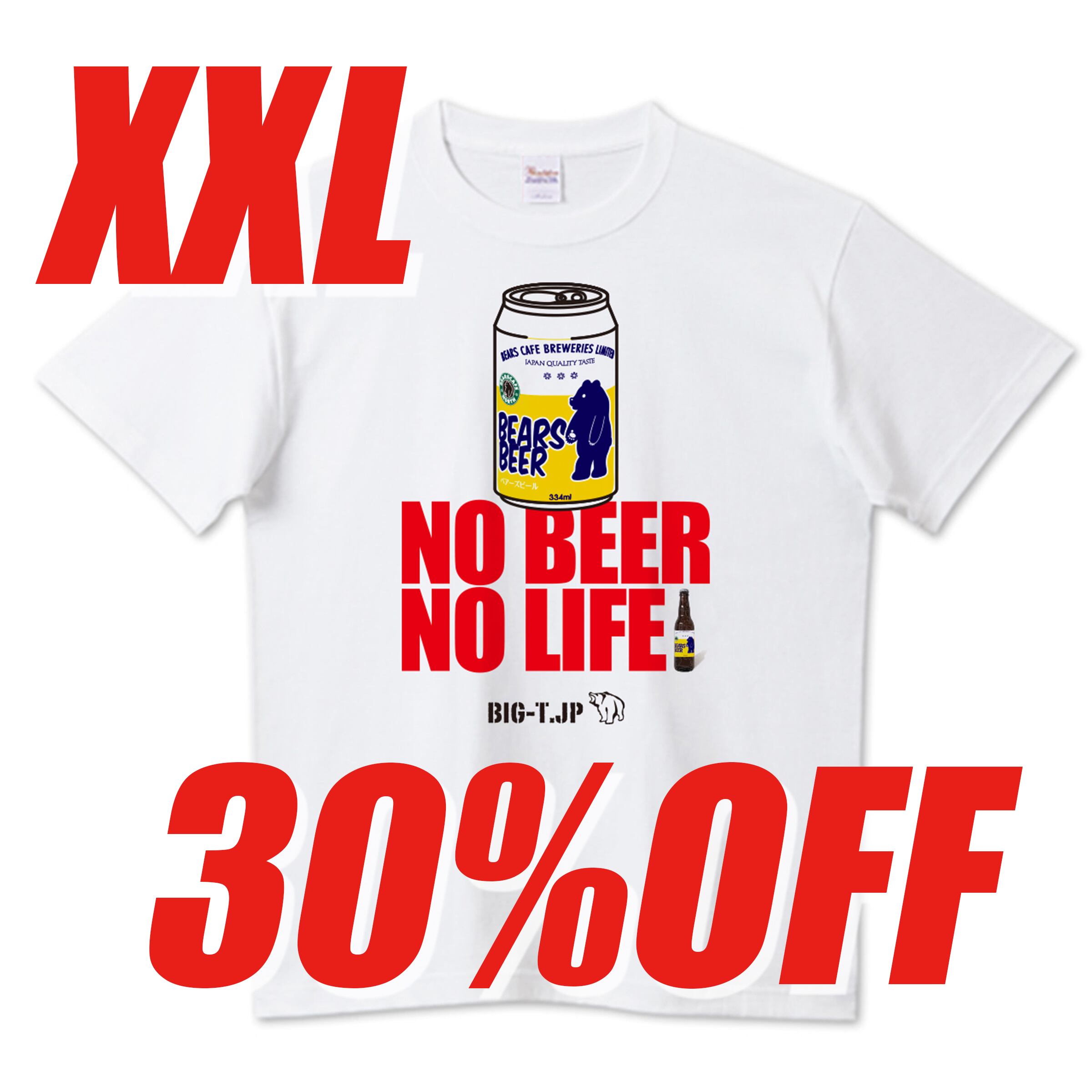 <XXLサイズ30%OFF>NO BEER NO LIFE!BEARS BEER 缶ビール Tシャツ ホワイト<XXL1点限り!>