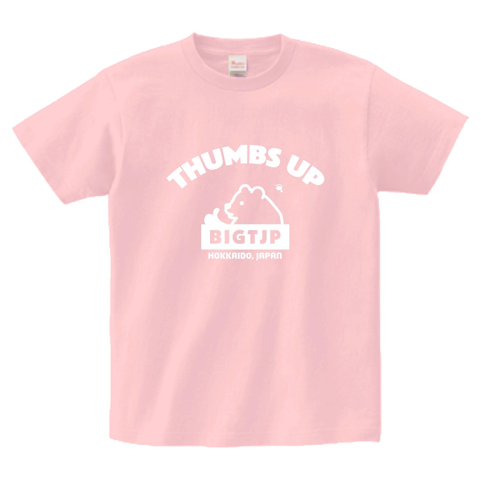ヒグマくんの横顔と親指を上げたGOODサインロゴのTシャツです。