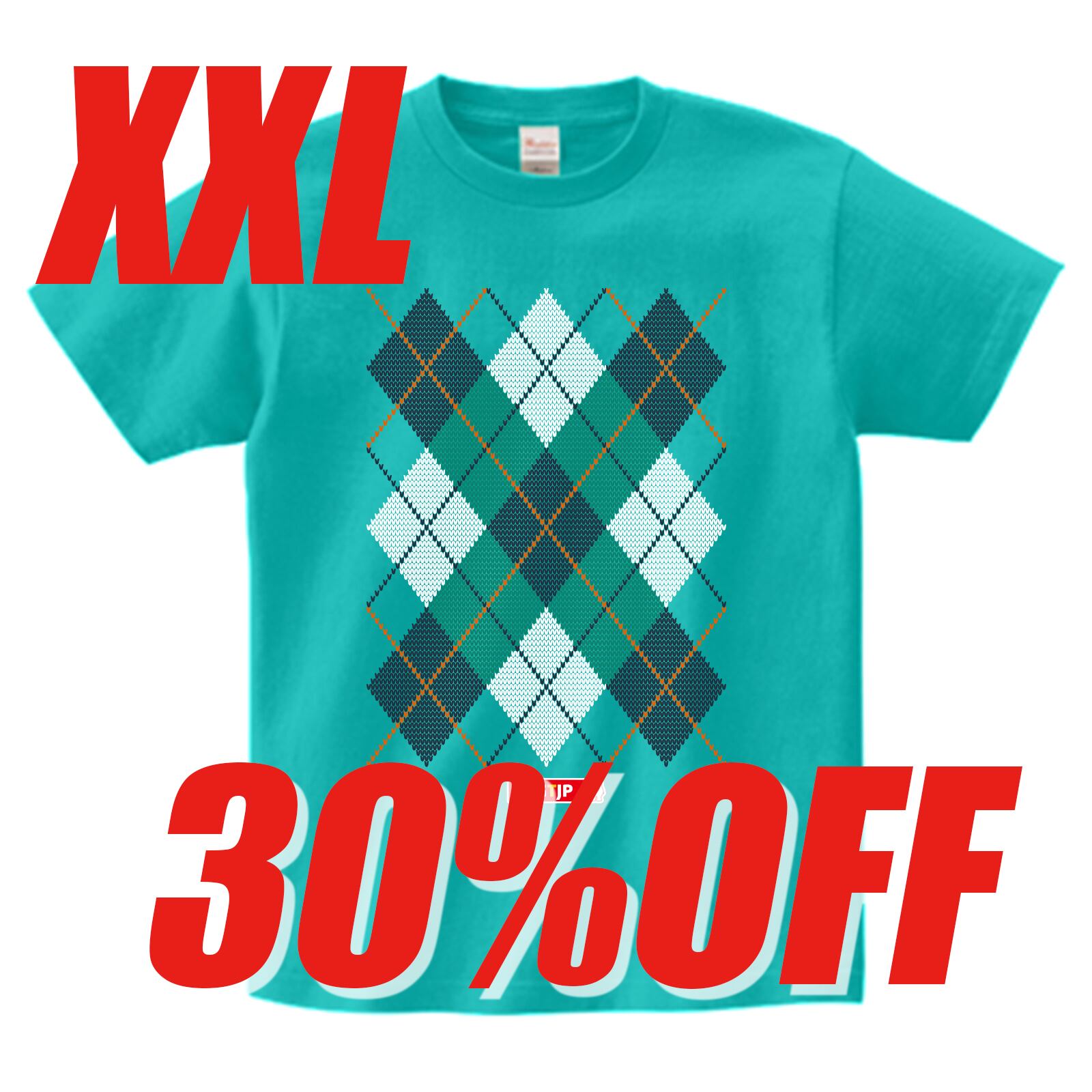 <XXLサイズ 30%OFF>アーガイルTシャツグリーンカラー :期間限定色ミント